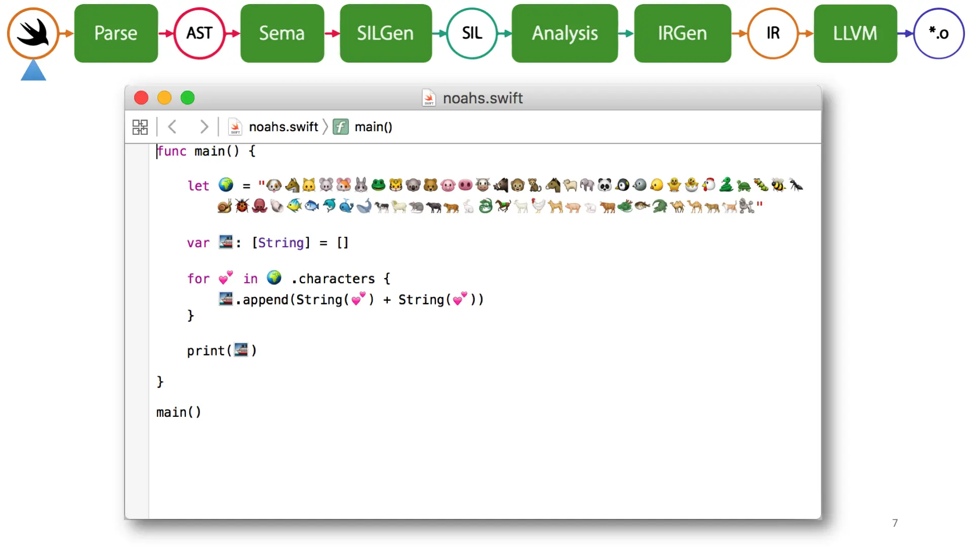 For a visual representation, let’s take a little journey. We start at the parser and lexer and Swift and the Noah’s ark example.