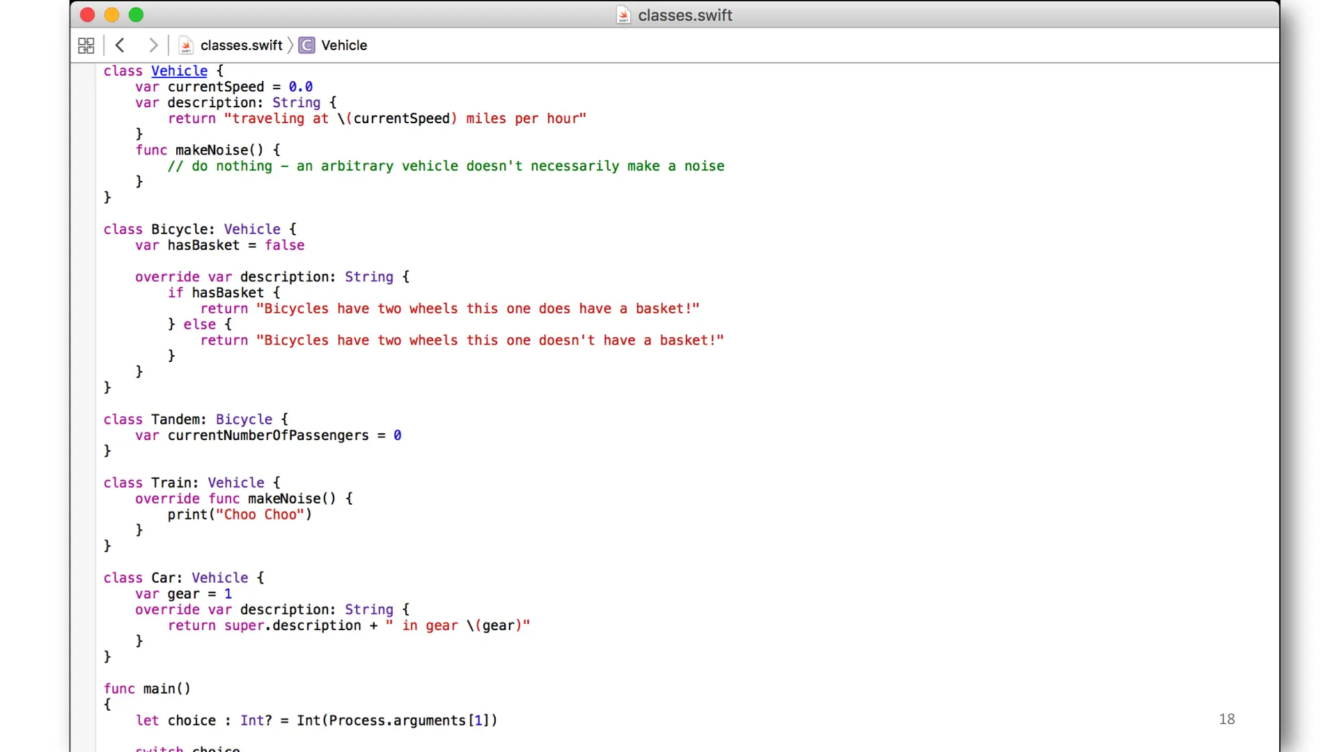 This one is a for class inheritance and it also uses optional unpacking/matching. We have our base class “Vehicle”. Bicycle derives from it and Tandom derived from Bicycle.