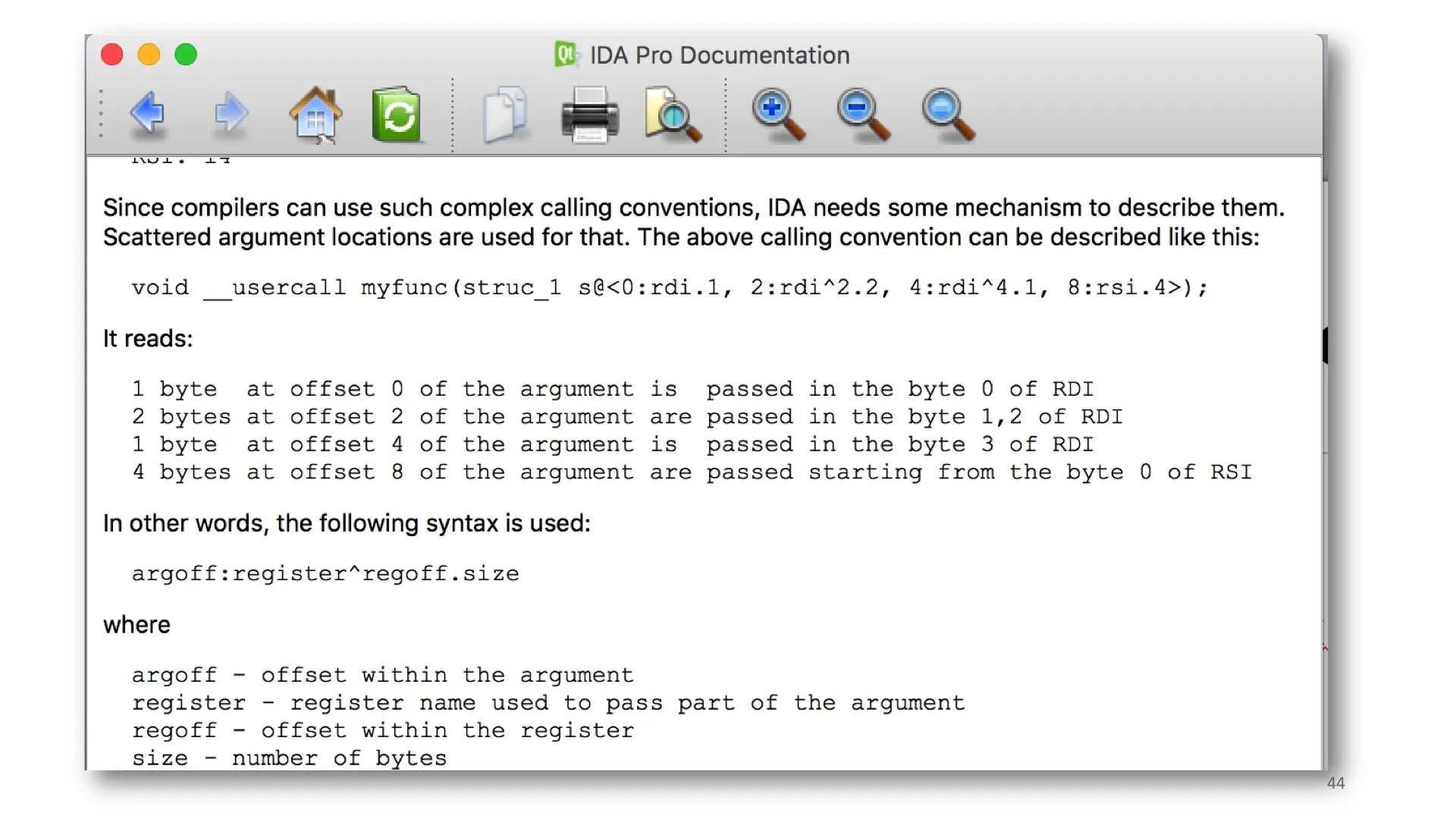 Either of these two types works properly in IDA and HexRays. Aren’t they ugly? Also, this doesn’t scale to 4 register arguments yet.
