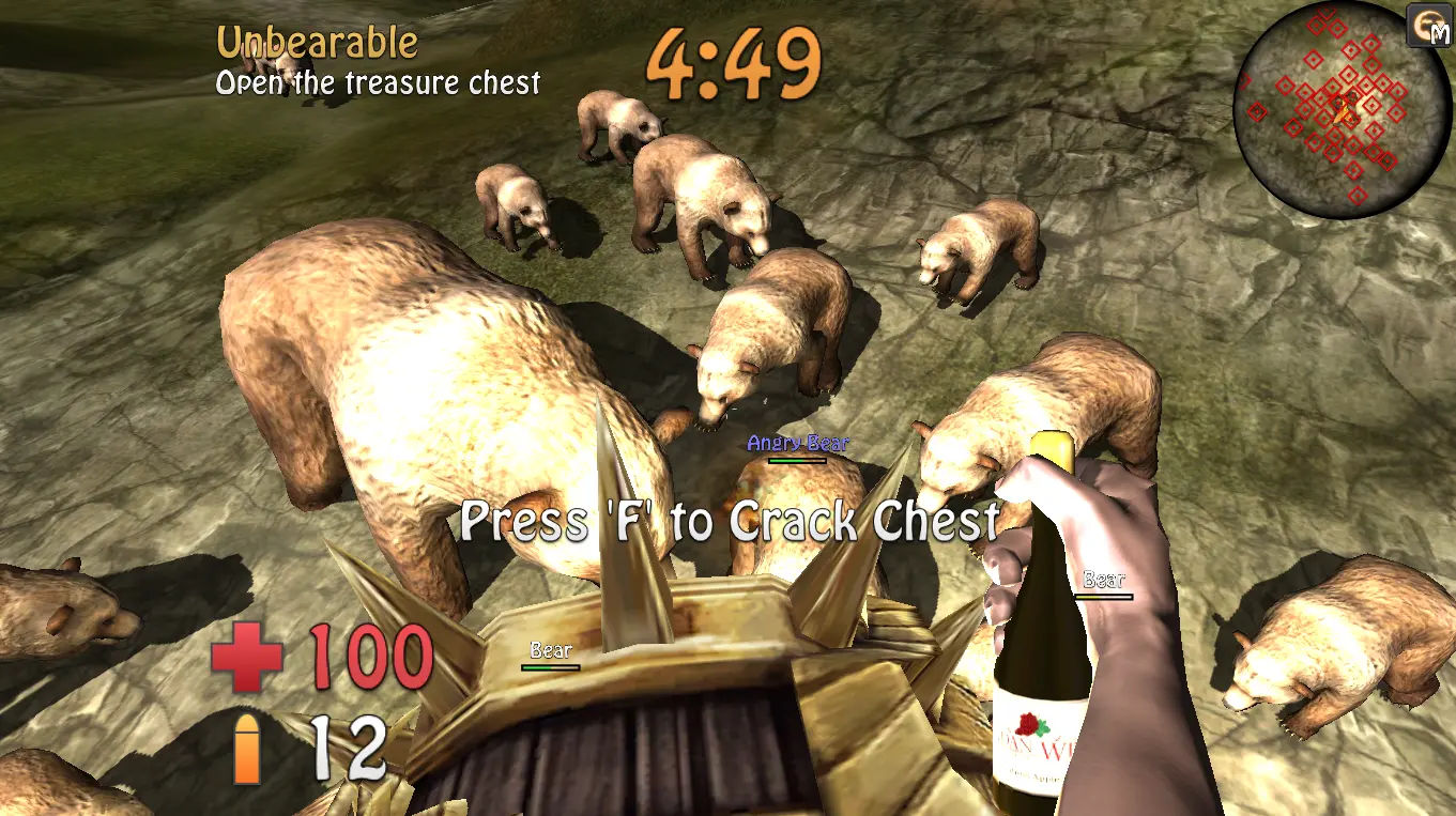 Unbearable: Open the chest before the bears kill you. Also, in the last few minutes, they have had assault rifles.