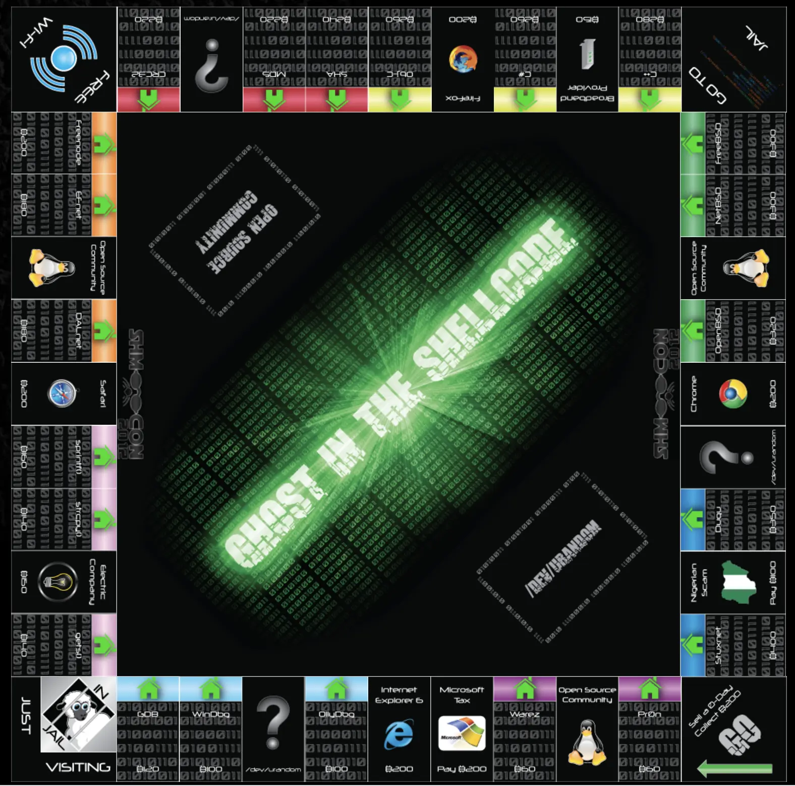 First, we had to pick a name. Someone – Jordan? Brandon? Greg? – on the team was watching Ghost in the Shell during the meeting and it was suggested we do a Ghost in the Shell themed game and use the name Ghost in the Shellcode. We didn’t have a better name, so we went with it and decided we’d change the theme and name every year.